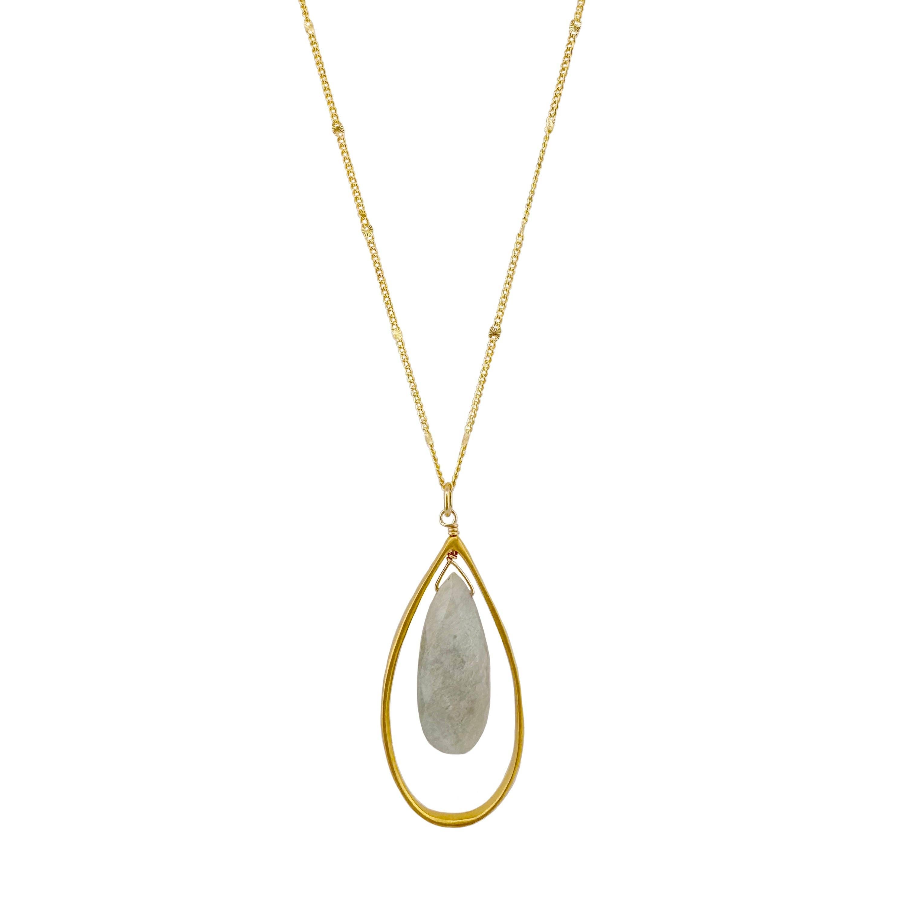 Large Open Teardrop Aquamarine Necklace Silver or Vermeil