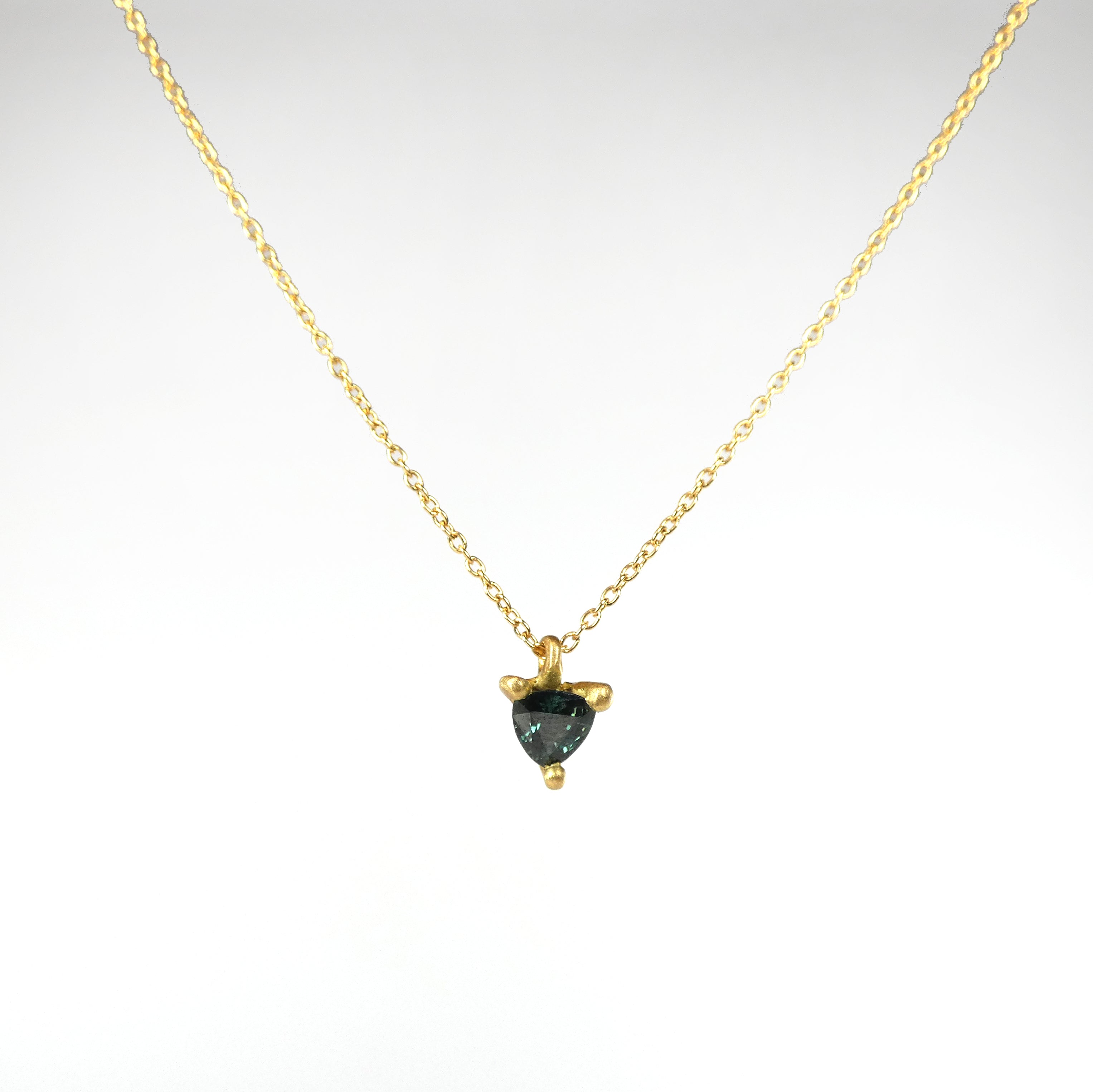 Marian Maurer's Faerie Pendant Necklaces feature hand-set stones that sparkle with color. This necklace features a magical 4.0mm blue sapphire pendant on a 16" cable chain, all in 18 karat gold.