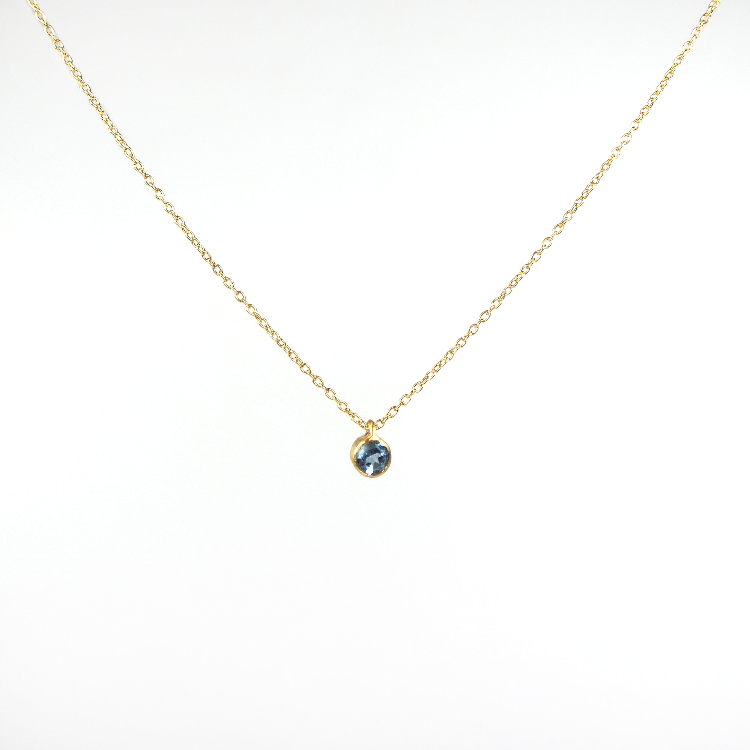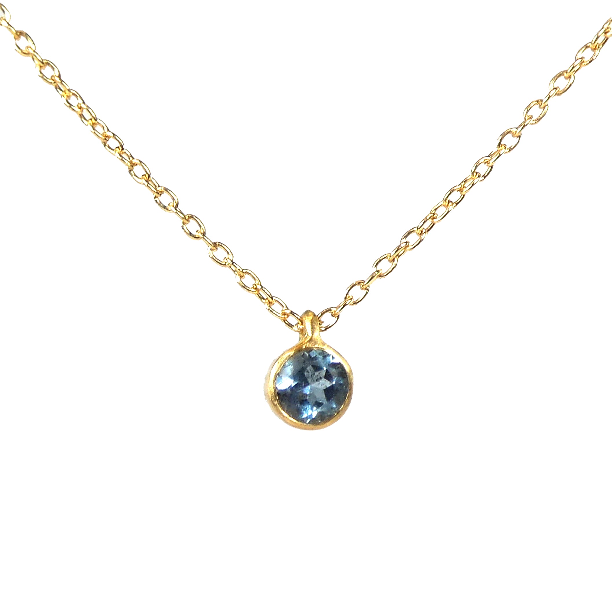Marian Maurer's Micro Gemstone Pendant Necklaces feature bezel-set stones in bold, yet understated pendants that sparkle with vibrance. This necklace features a 3.0mm "micro" aquamarine pendant on a 16" cable chain, all in 18 karat gold.