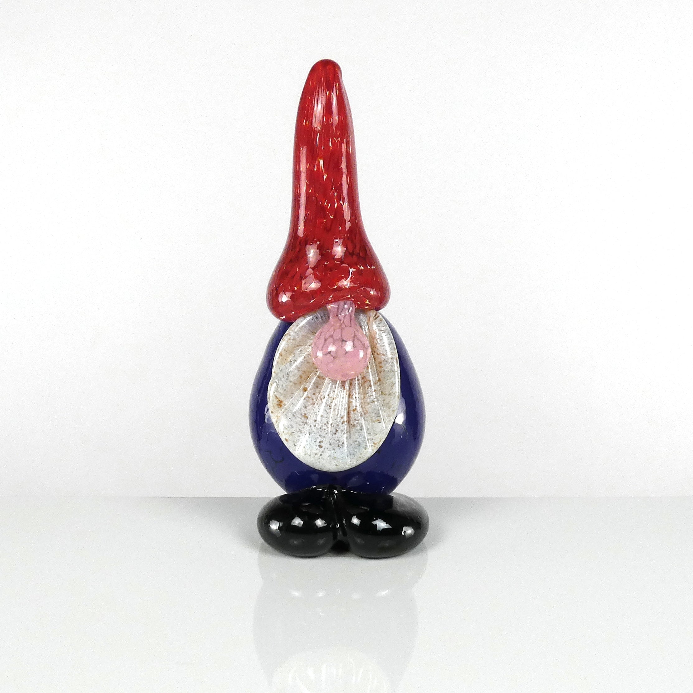 Add a new whimsical friend to your home! Commonly known as a symbol of good luck, gnomes are believed to bring happiness and prosperity to their owners. This charming little gnome, handblown with playful colors and intricate details, is sure to bring a smile and a touch of magic wherever it sits.