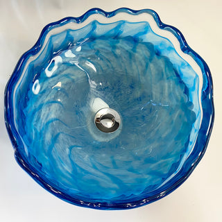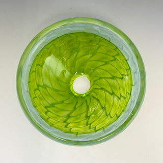 Since RIT, Jennings has been developing a body of work that he continues to this day. His bowls are his own take on a Swedish style of glassmaking that he first learned from Joon Kim, who was a year ahead of him at RIT. Working with layers of glass and color on a large pontil rod, his pieces are not blown, but rather sculpted to form a thick, heavy bowl form with fantastic optic qualities.