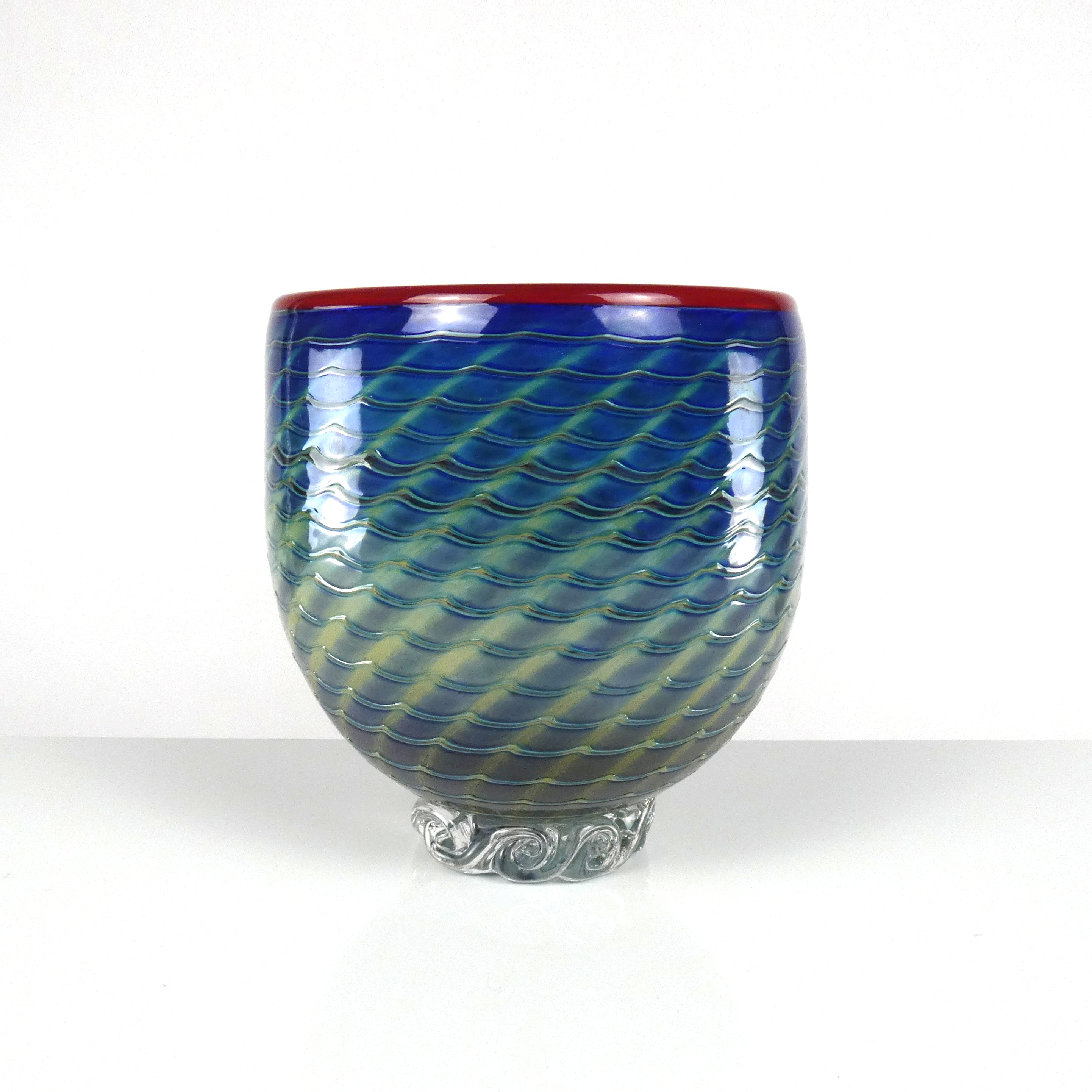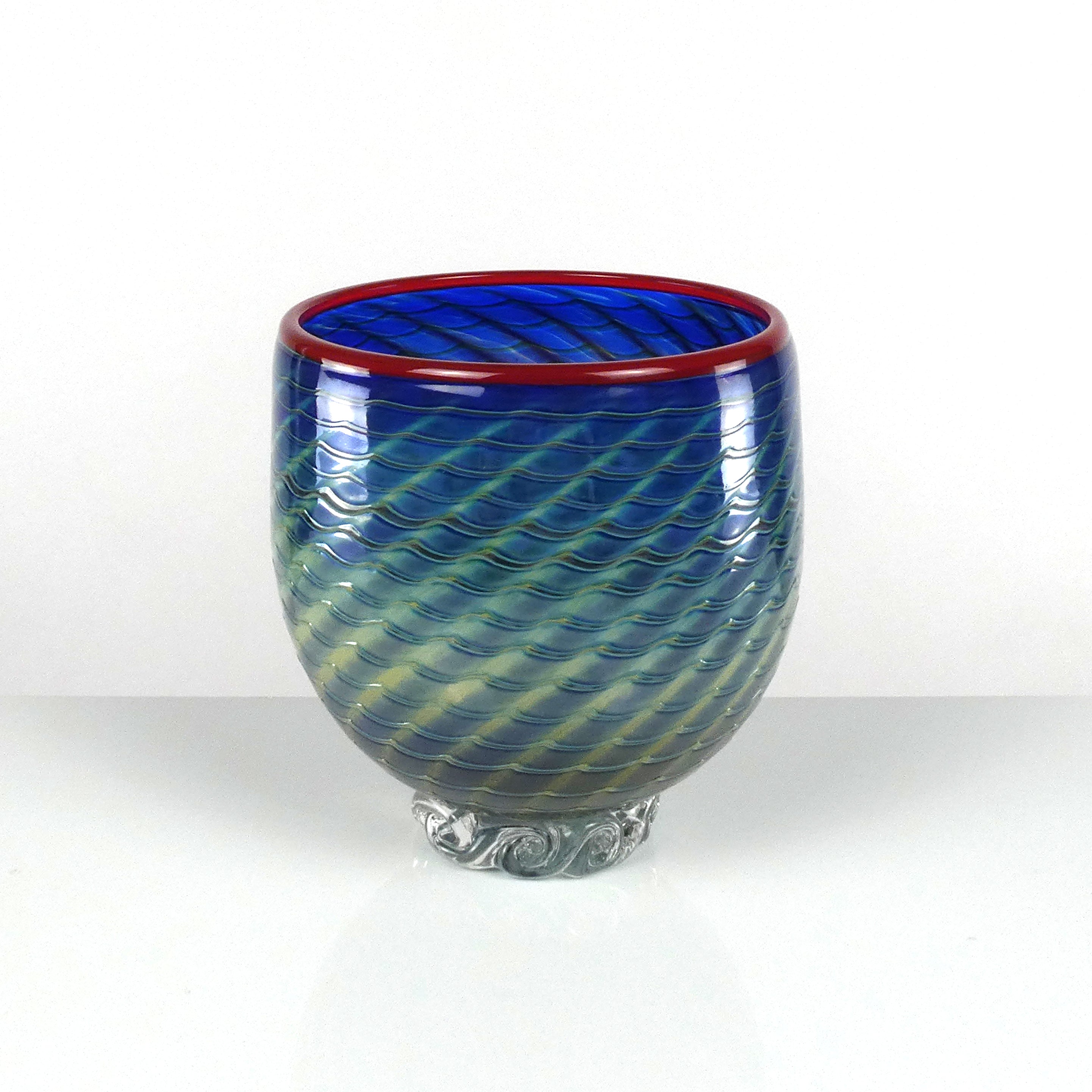 Our best-selling Turkish Blend design layers blue and green in a pattern reminiscent of herringbone, with a vibrantly contrasting red lip.