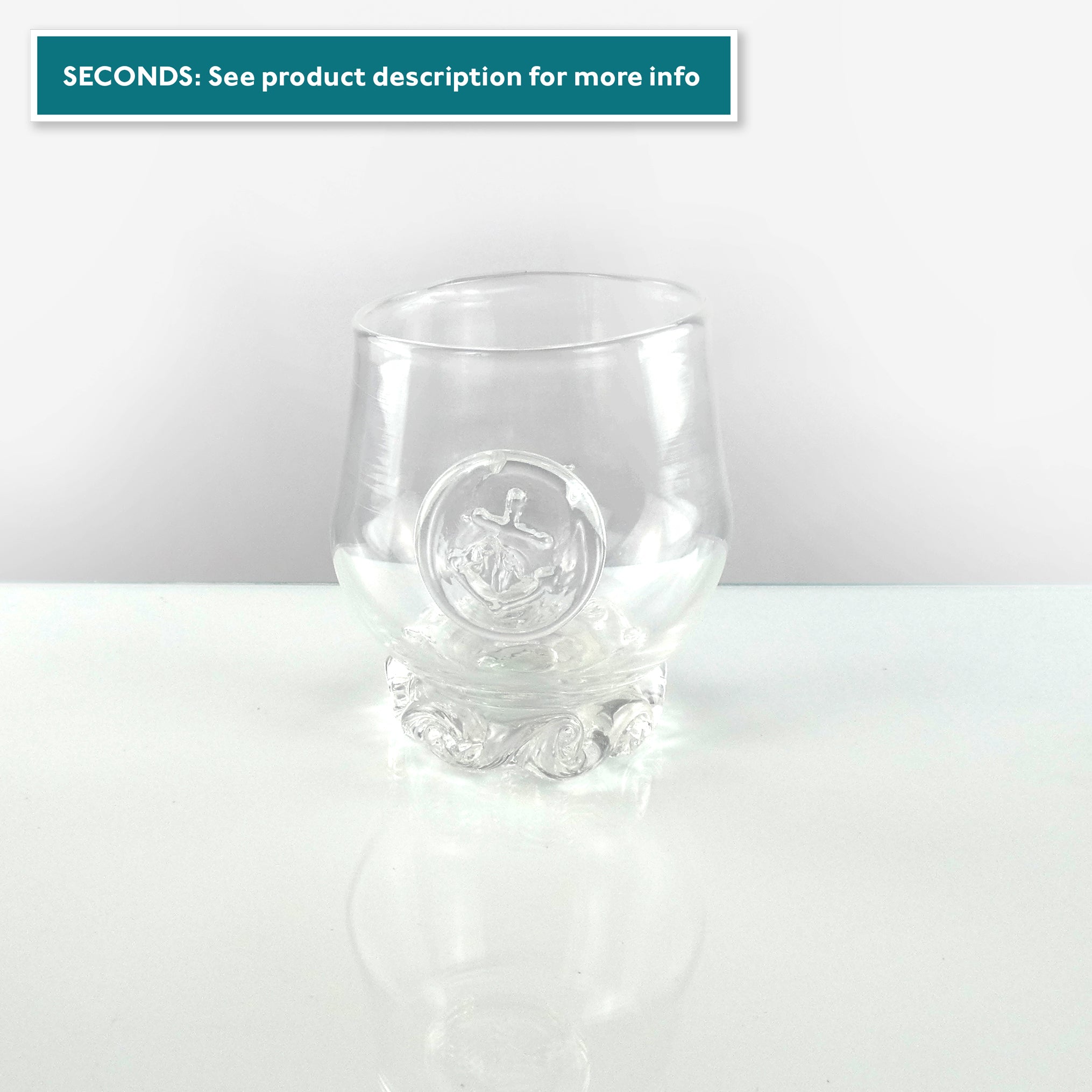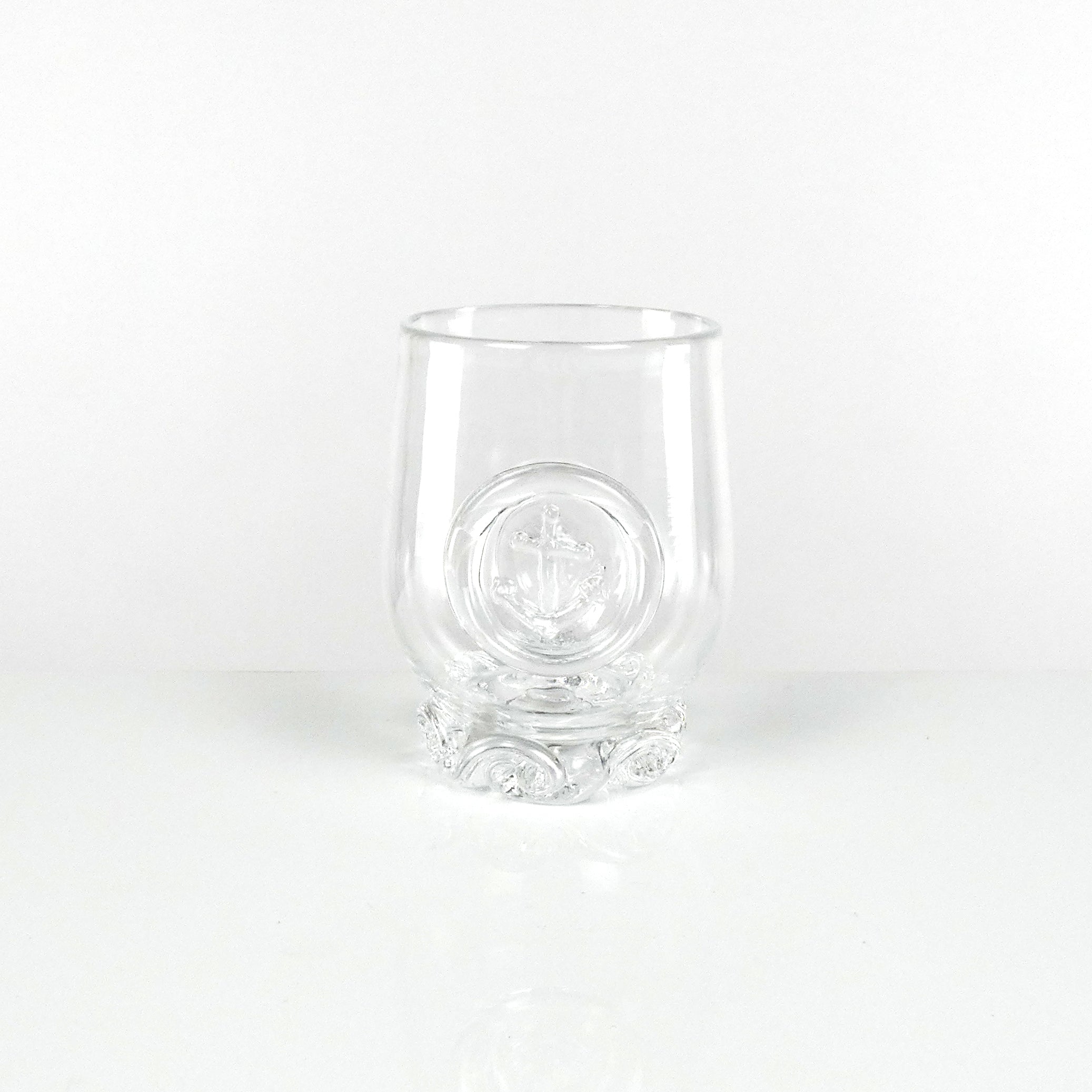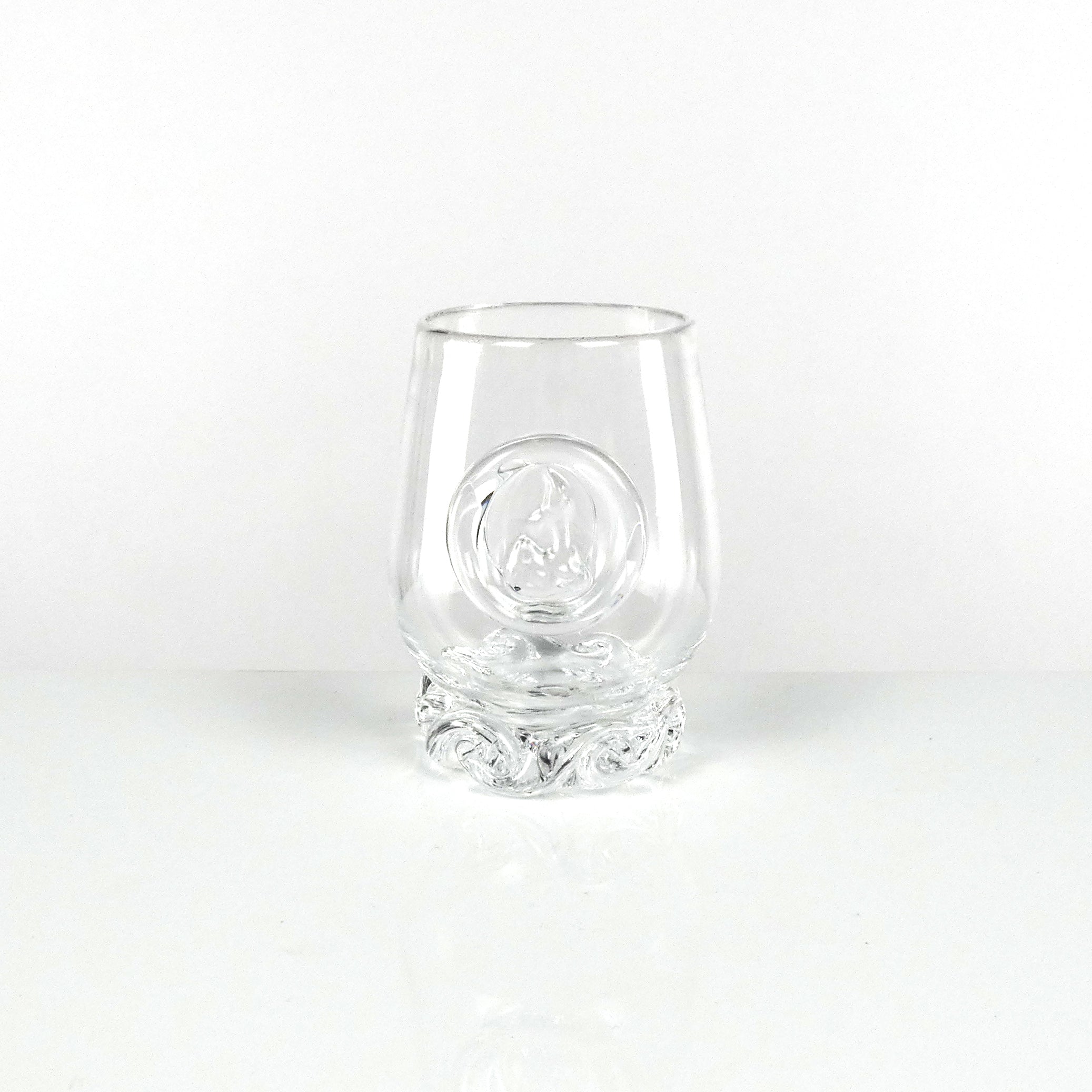 At around 4" tall, our Ship's Whiskey Glasses are the perfect sipping size. Eben's signature wavy foot adds some weight and stability to the bottom. Choose an anchor stamp or a Block Island stamp.
