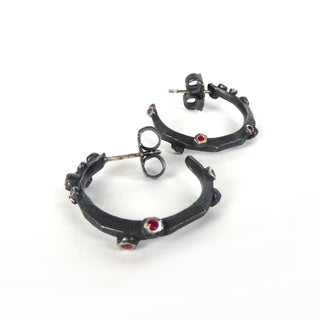 "Secret Garden" Ruby and Diamond Drop Earrings in 18k Gold and Silver