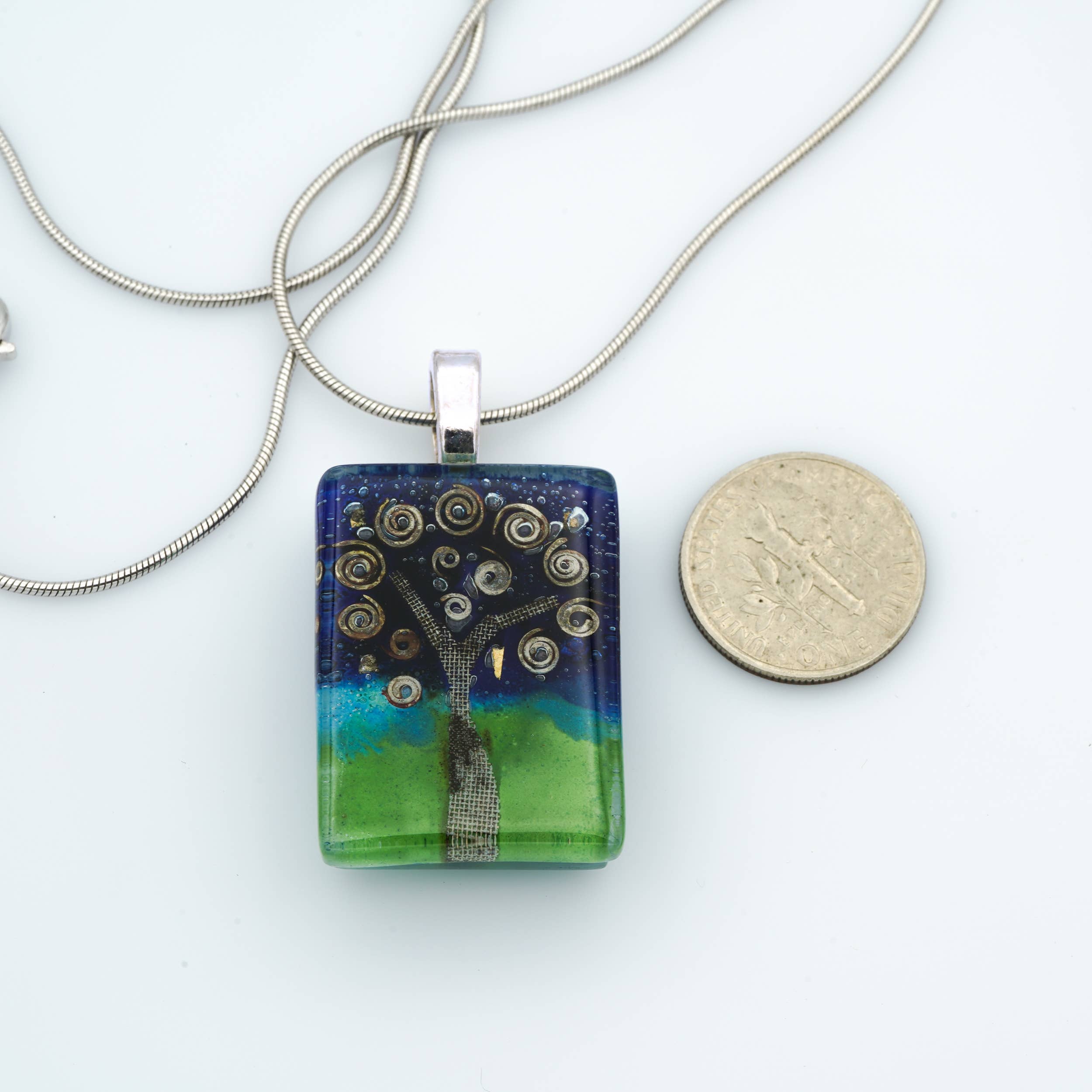 The bail is silver-plated brass with a lacquer finish to prevent tarnish. The 18" chain is sterling silver with a rhodium coating to prevent tarnish.