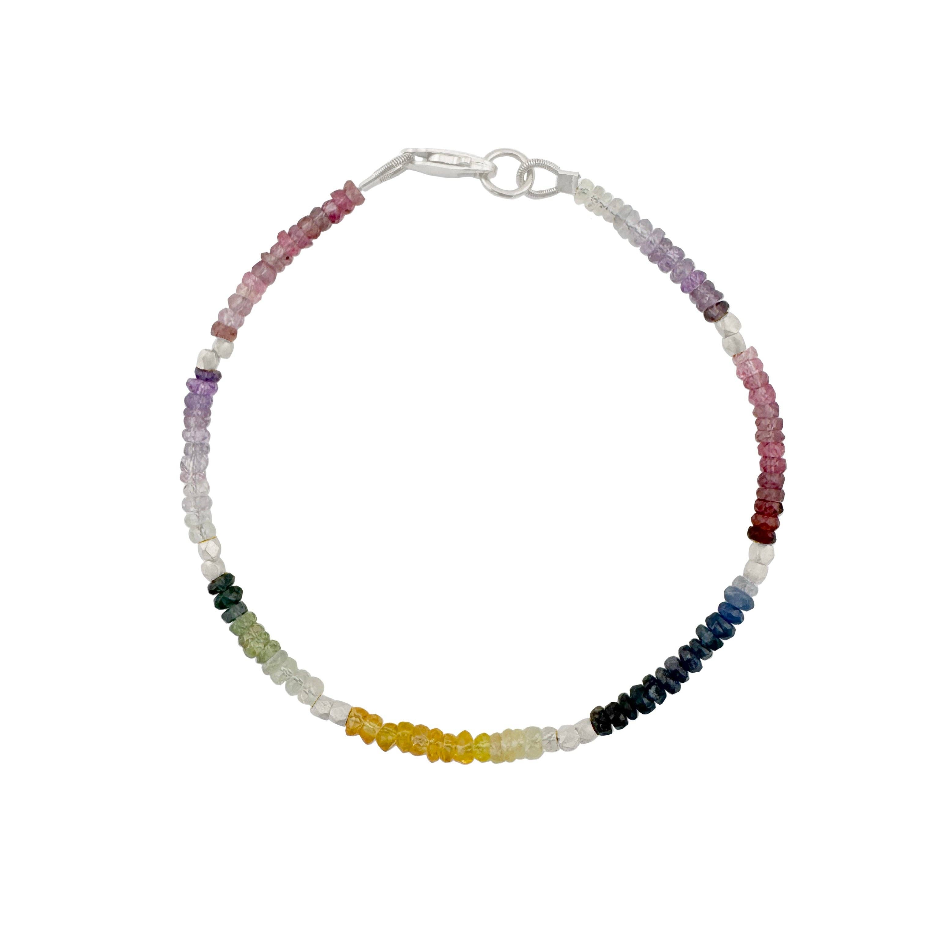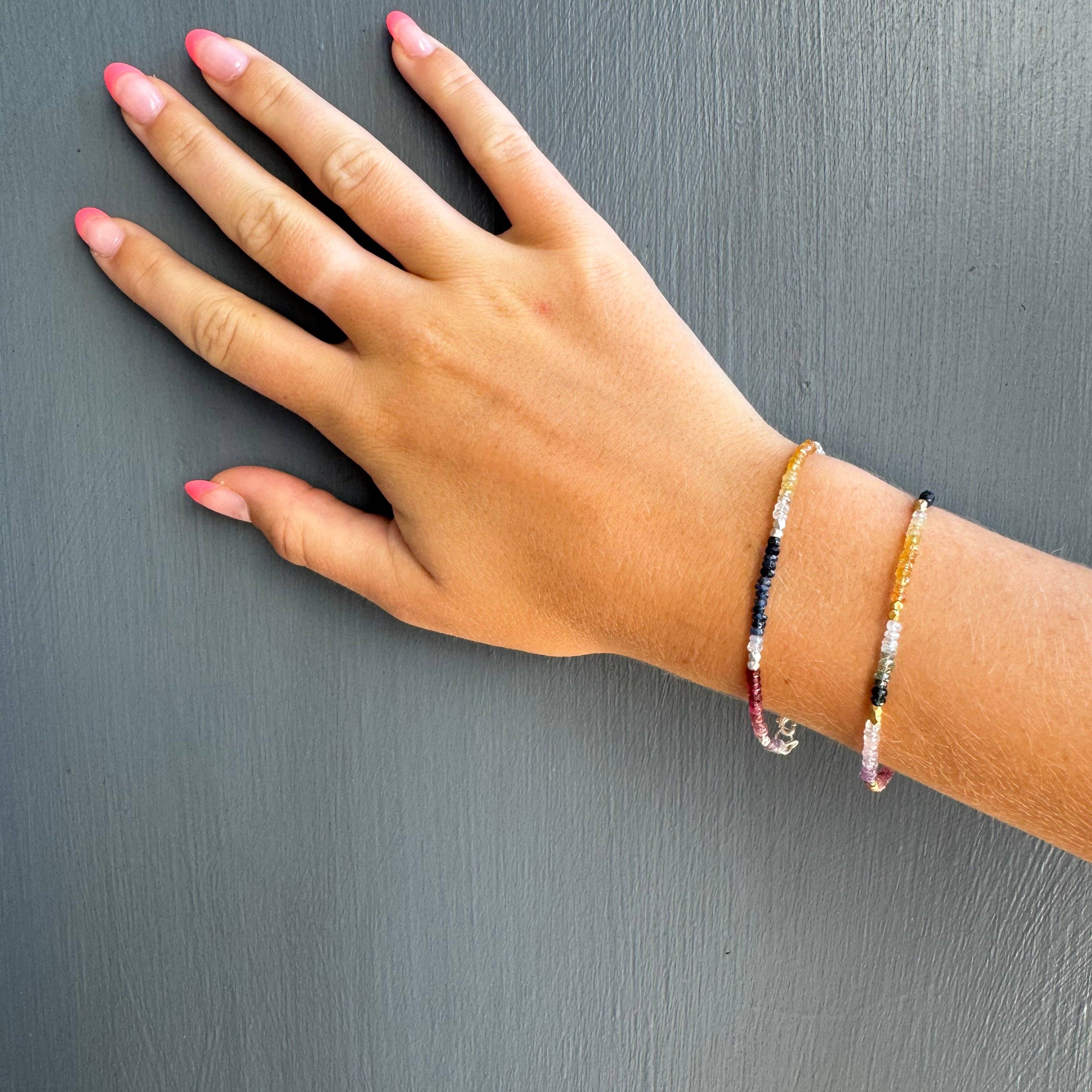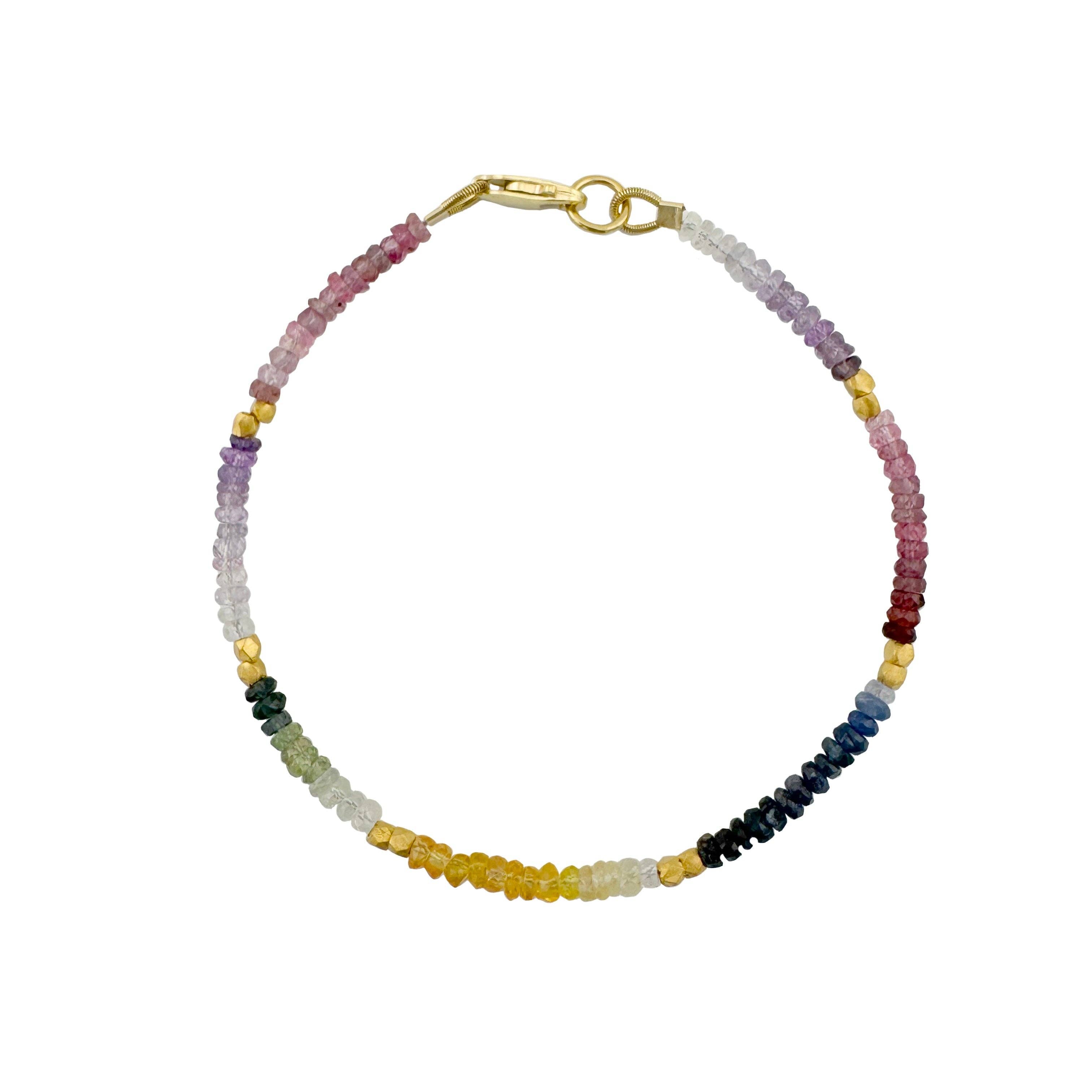 Beautiful multicolored sapphire beaded bracelet with vermeil accents.