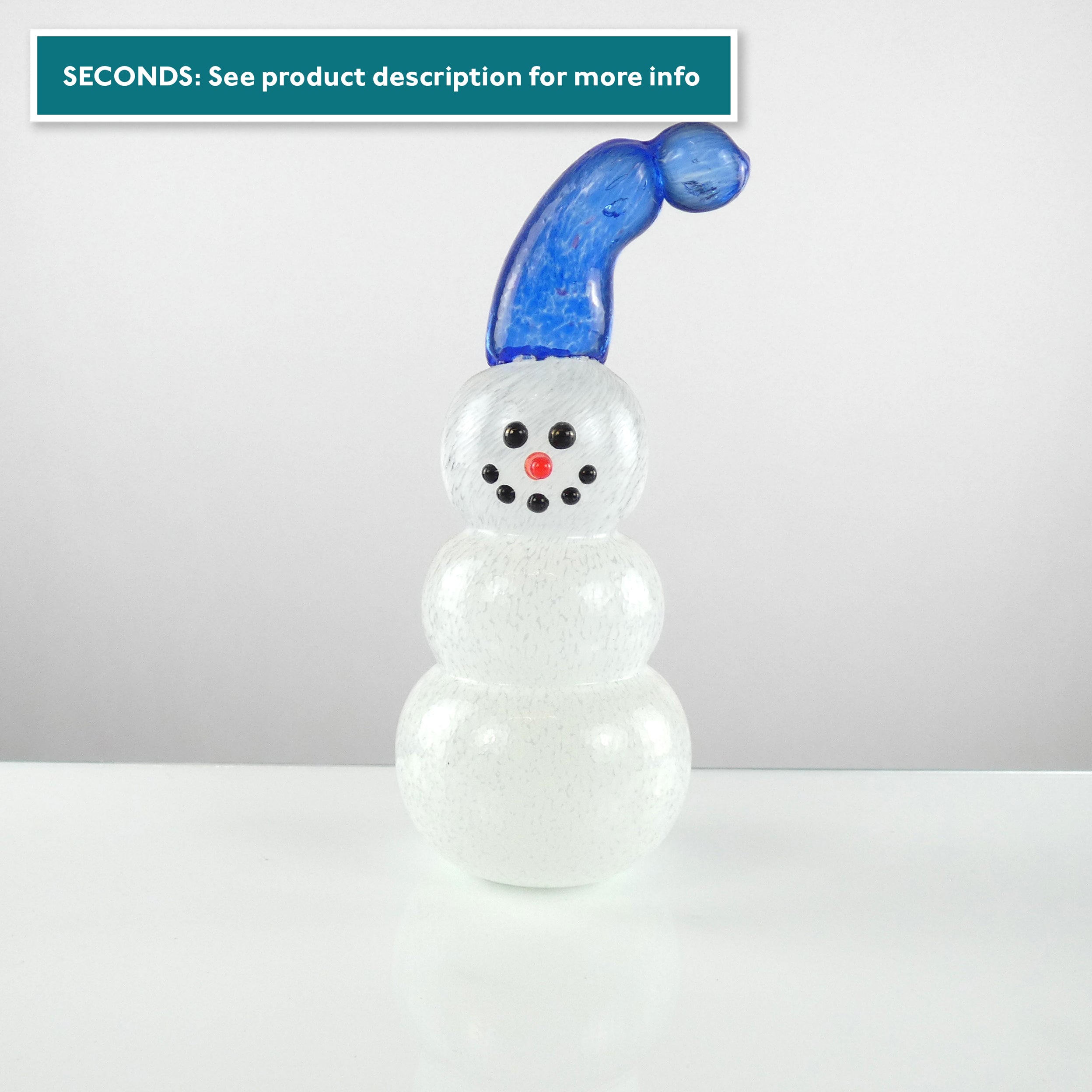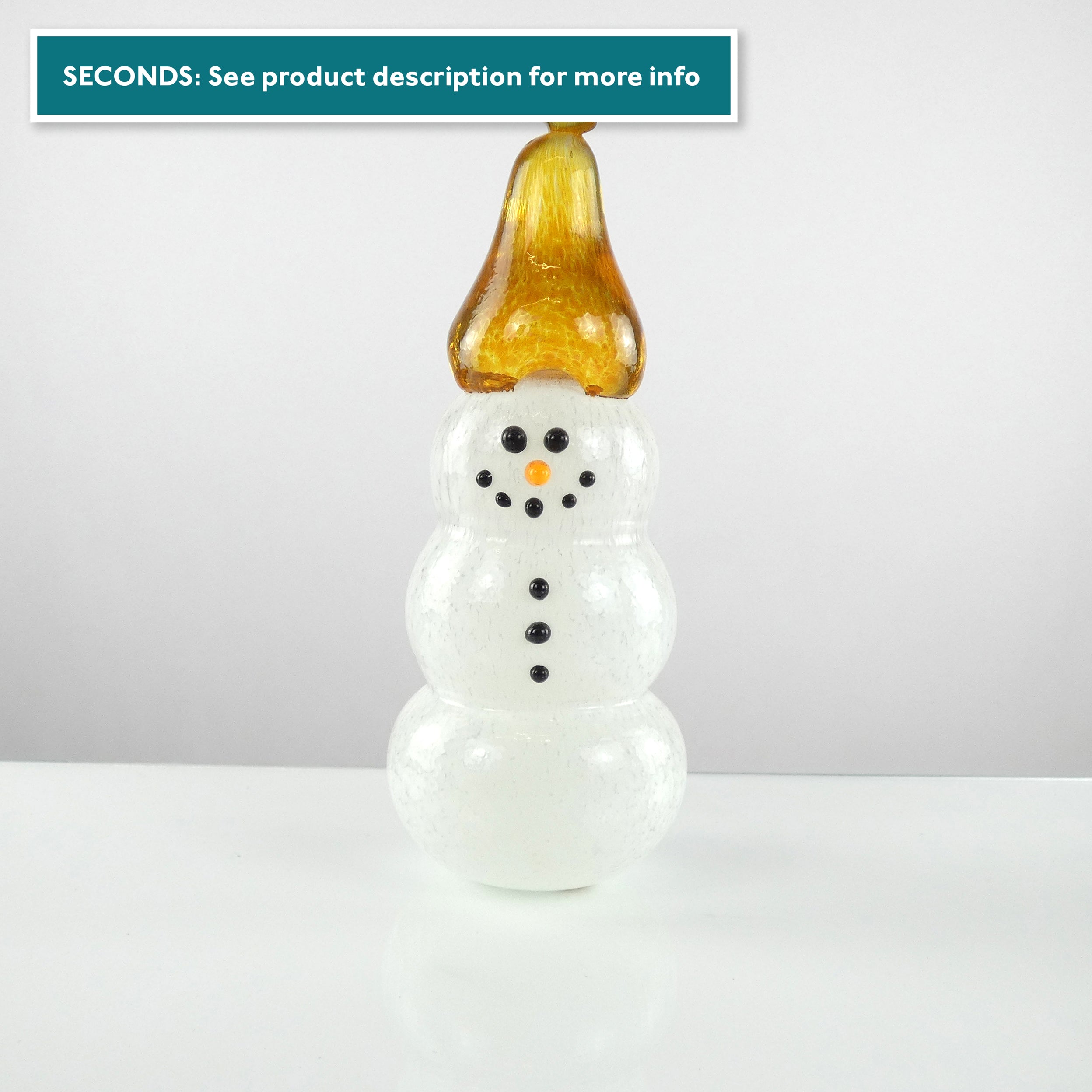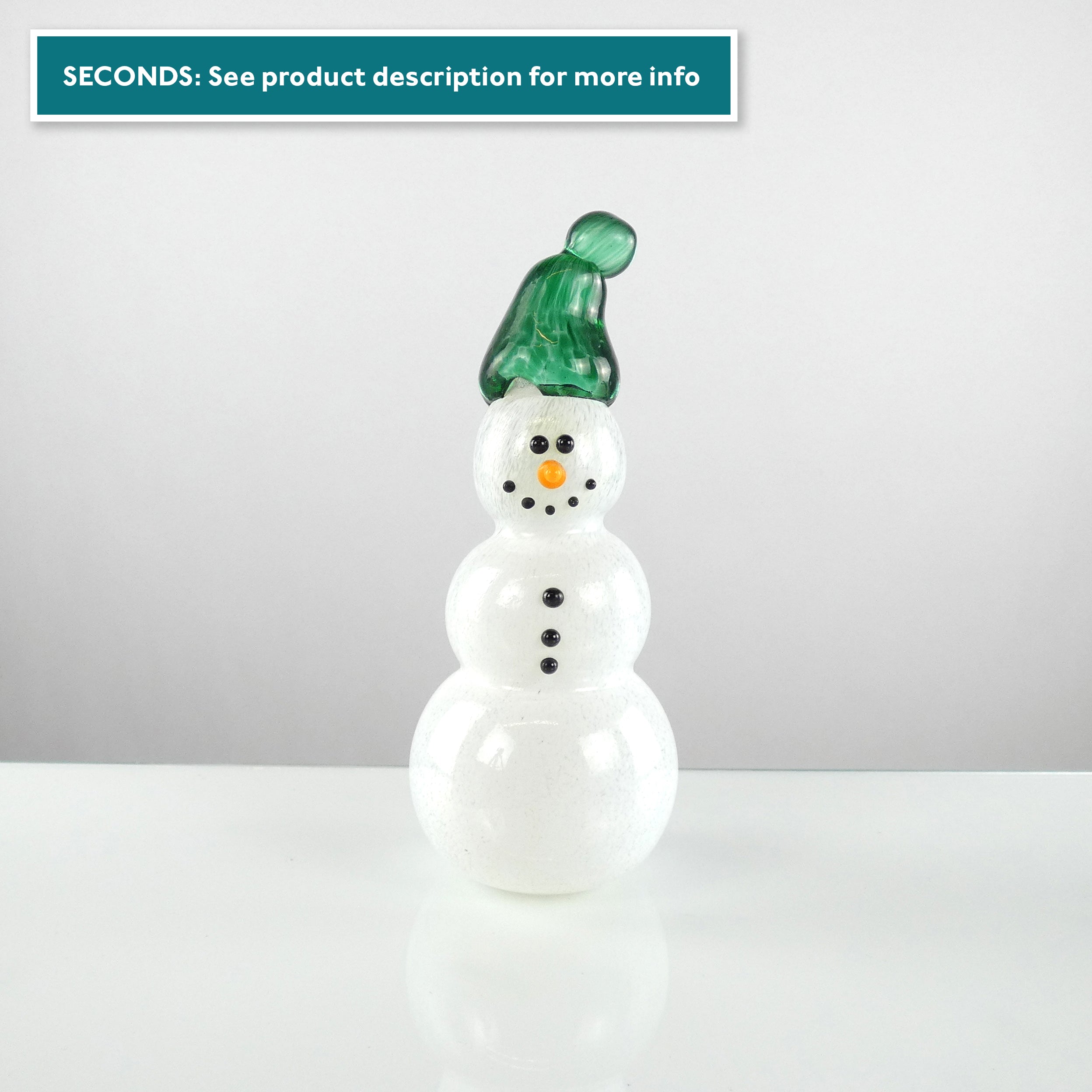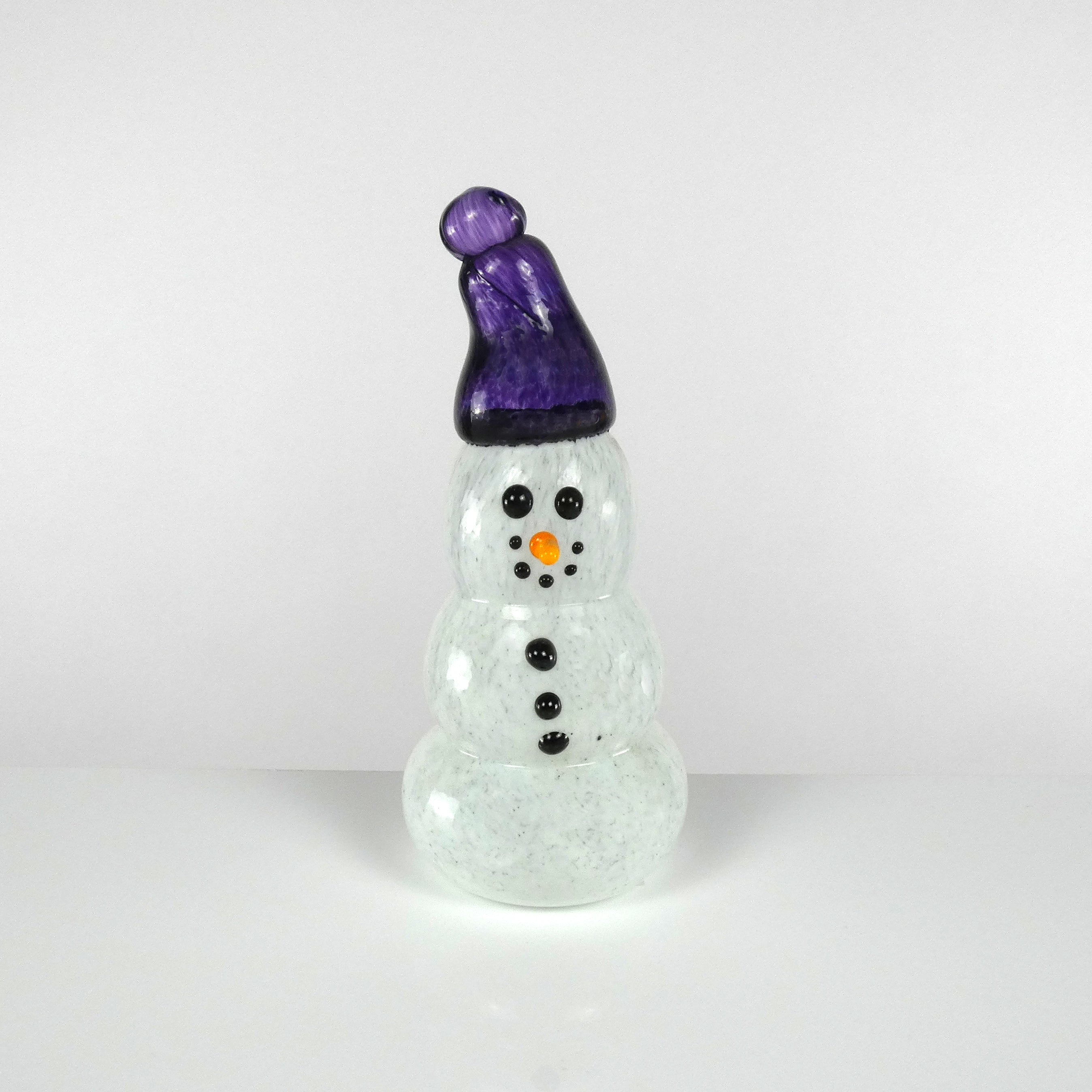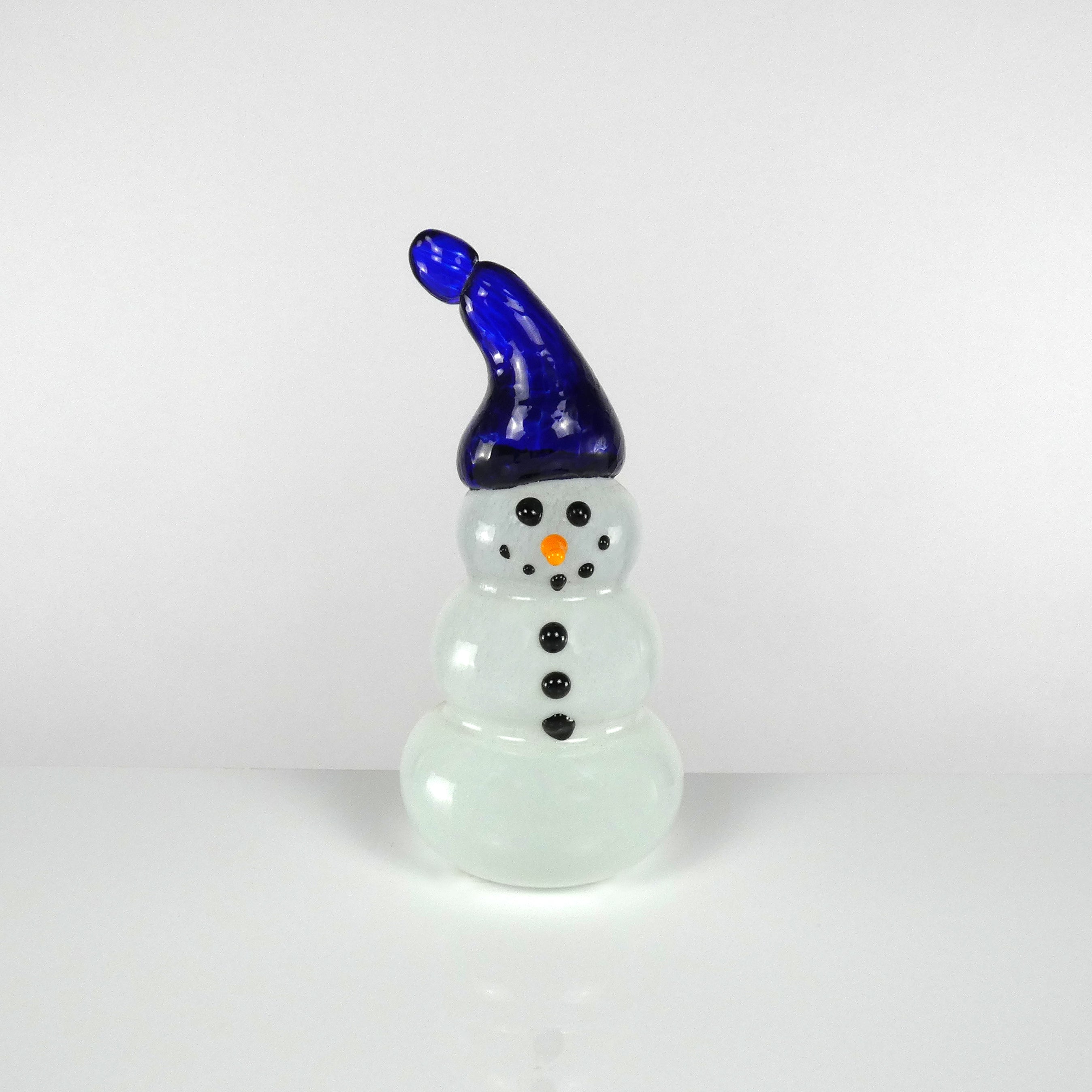 Cute little snowmen sculpted out of solid glass. lease remember these are handmade, so there will be some variation: some might be taller, some shorter, some fatter, some thinner. Hats may flop left or right or be straight up. We will always send you a cute one.