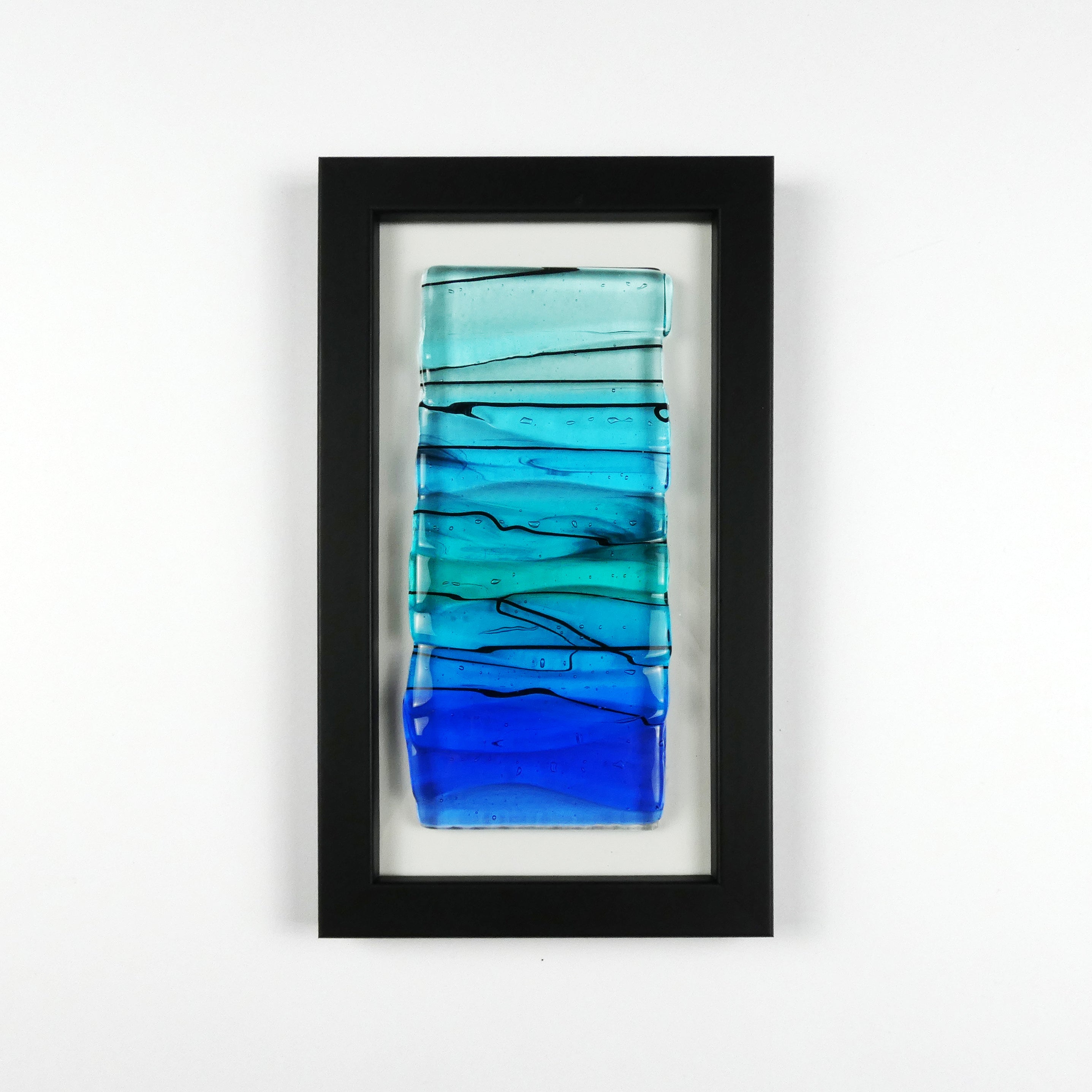 Part of the Go With the Flow collection, this radiant Mini Long Seascape by Creative Fusion Glass captures the spirit of the shoreline in luminous, handcrafted detail. Layers of colored glass are artfully composed and kiln-fused—heated just enough to soften the edges while preserving the wave-like textures that invite both touch and reflection.