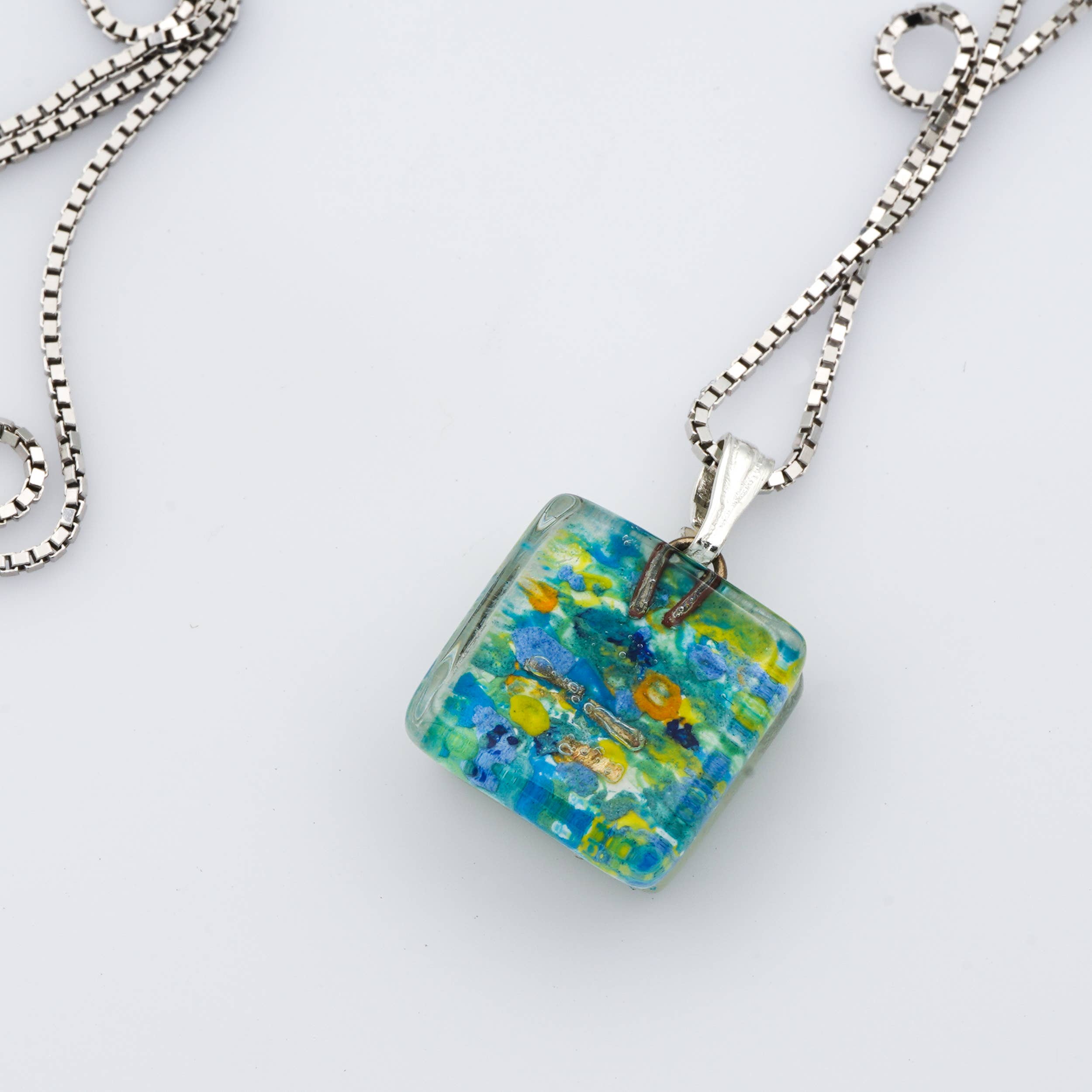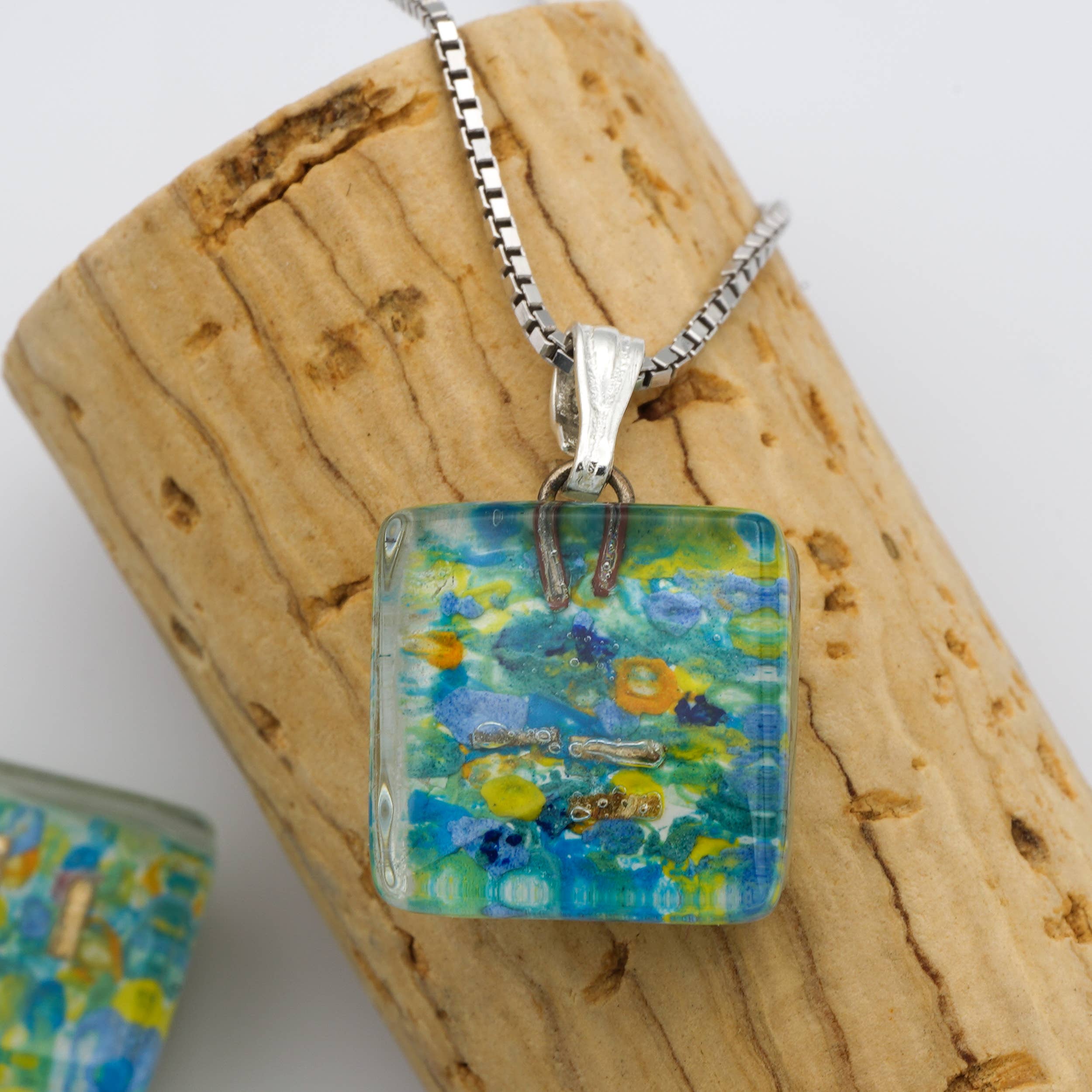 Part of the IMPRESSIONS collection, loosely based on the art and life of Claude Monet. Sterling silver rhodium-coated (to prevent tarnish) chain included, 16" or 18". Earring card optional. Spinner lips on card optional.